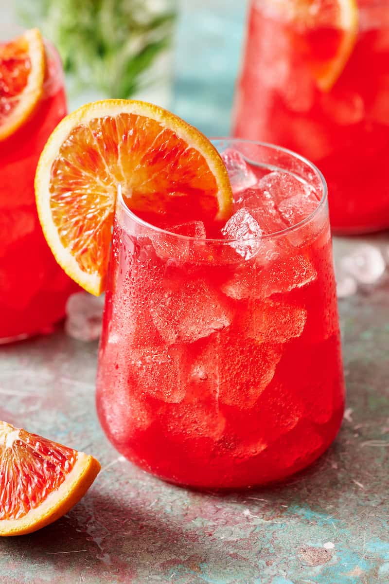 If blood oranges aren't available in your area or the season has passed, cara cara oranges are your best swap. They have a similar sweetness and a beautiful pink flesh, though you'll get a softer color in the glass. Regular navel oranges work, too, just not quite as bold in flavor and color.