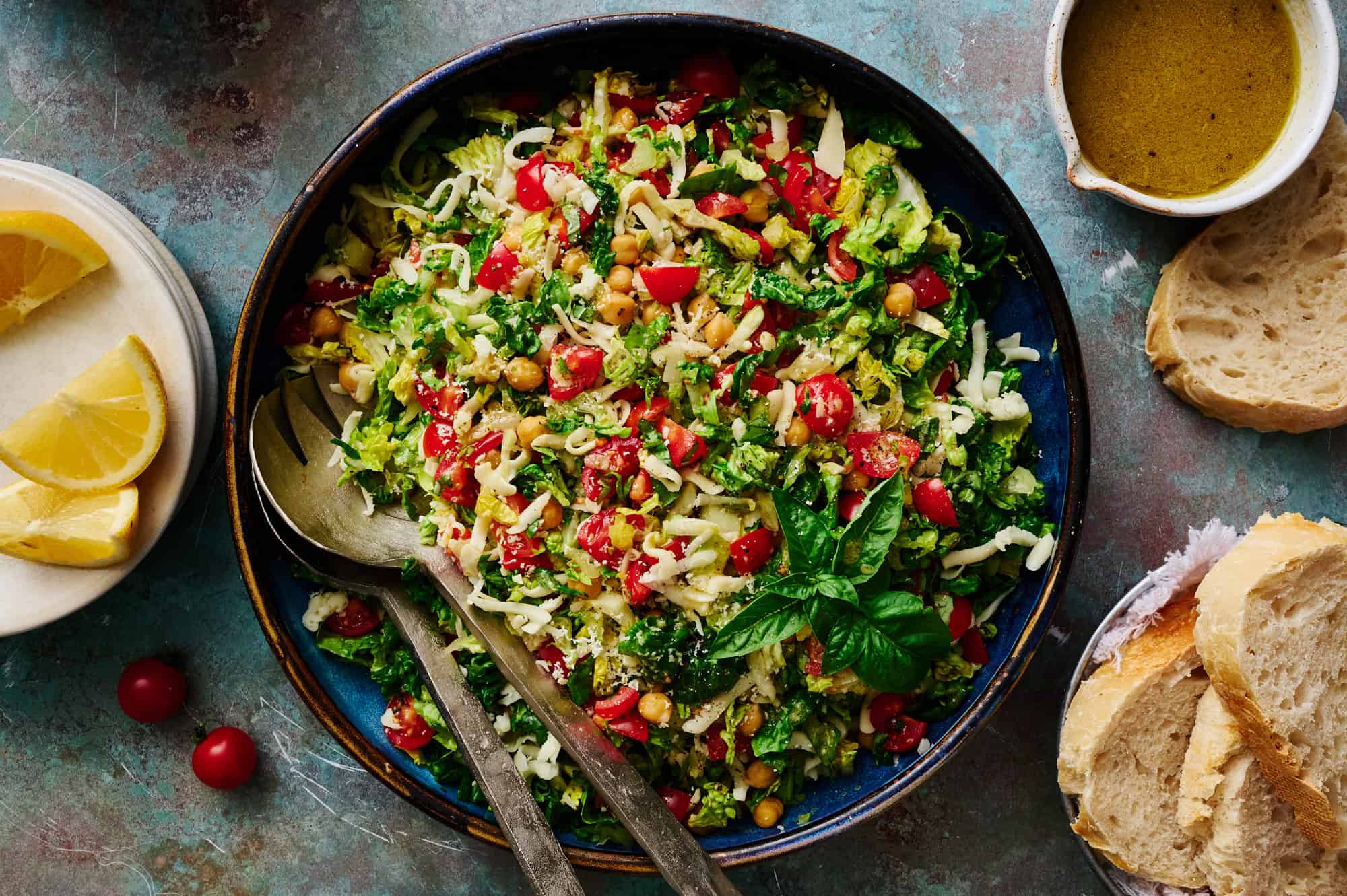 Fresh tomatoes, basil, and mozzarella get a twist in this Caprese Chopped Salad with crisp greens and a zesty lemon dressing.
