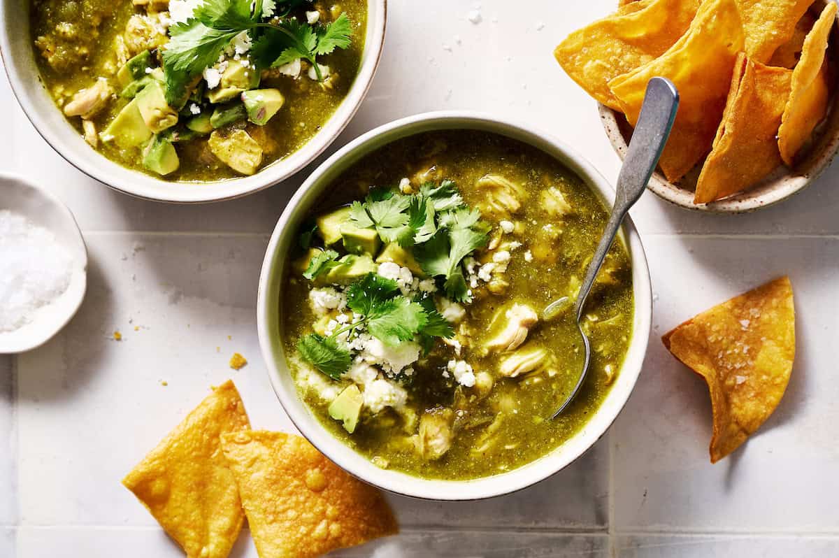 Tender chicken simmered in a smoky, tangy green sauce made from roasted poblanos and tomatillos.