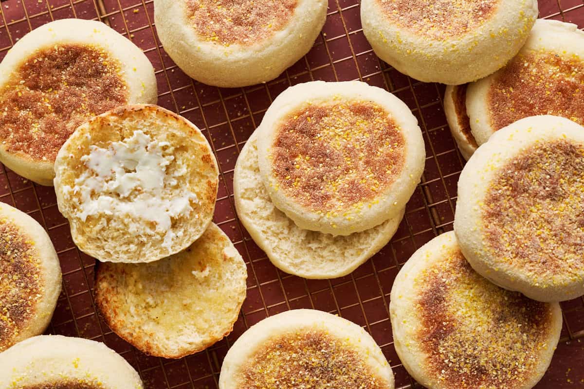 - Cool: Transfer the cooked muffins to a wire rack and let cool for at least 30 minutes before splitting with a fork (don't use a knife—using a fork helps create those signature nooks and crannies).